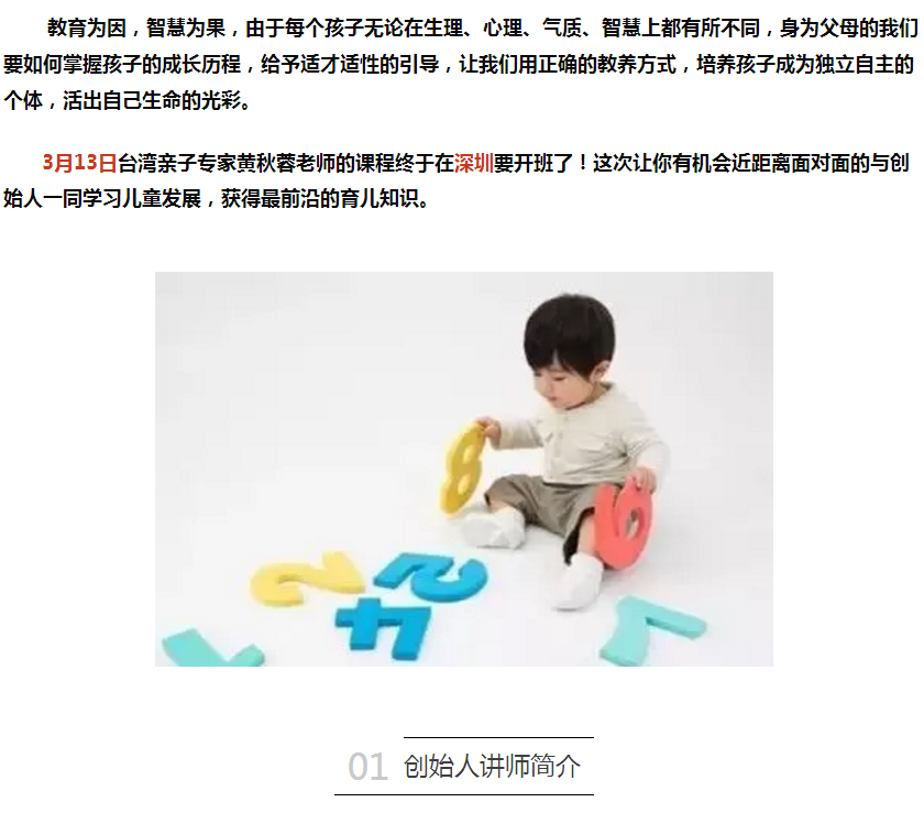 【喜訊】3月13日至15日,臺灣著名親子專家黃秋蓉老師“家長課堂”開講啦!